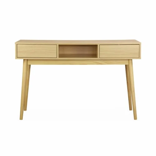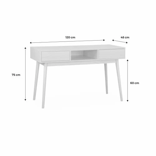 Laissez vous tenter par cette console qui habillera votre intérieur avec élégance. Avec ses 2 tiroirs push sécurisant votre espace et une niche centrale utile pour ranger vos affaires, essayer la console Mika c’est l’adopter ! Son piètement en bois de pin ajoute une touche scandinave à votre intérieur. Pratique, elle se glisse dans les petits espaces et son plateau fonctionnel vous permet d’exposer des objets décoratifs.