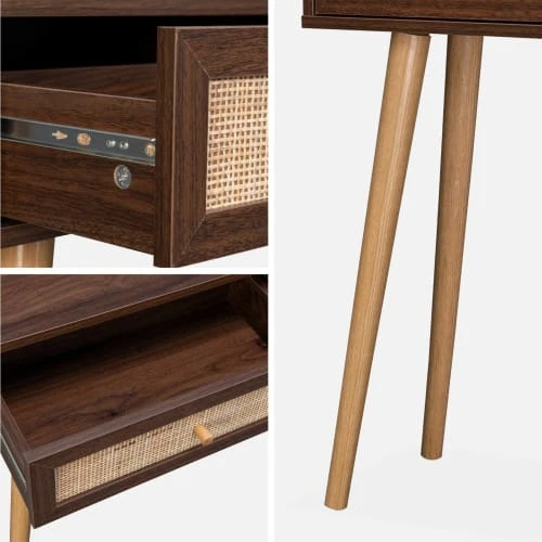 Placée dans un couloir ou dans un salon, cette console apporte du cachet à votre intérieur. Avec ses lignes droites et son tiroir en cannage, elle est élégante et indémodable. Cette console peut aussi être utilisée comme coiffeuse dans une chambre, il suffira de lui ajouter un joli miroir.