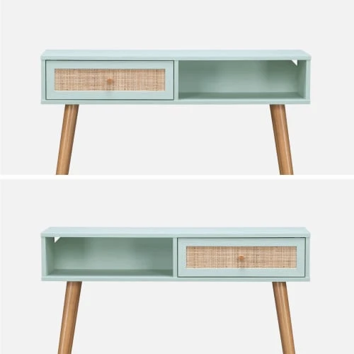 Placée dans un couloir ou dans un salon, cette console apporte du cachet à votre intérieur. Avec ses lignes droites et son tiroir en cannage, elle est élégante et indémodable. Cette console peut aussi être utilisée comme coiffeuse dans une chambre, il suffira de lui ajouter un joli miroir.