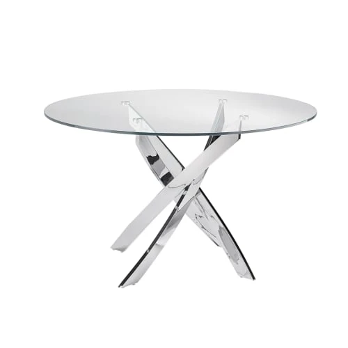 Angel Cerda Tables à Manger Table à Manger En Verre Trempé Pieds Croisés En Acier D150
