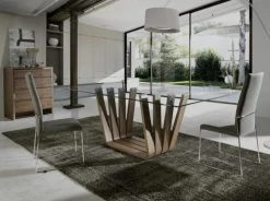 Angel Cerda Tables à Manger Table à Manger En Verre Trempé Et Pieds Placage Noyer L200