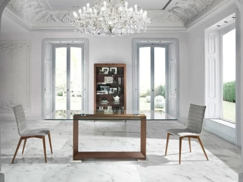 Angel Cerda Tables à Manger Table Extensible L160/200/240 Verre Trempé Et Placage Noyer