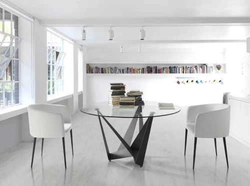 Angel Cerda Tables à Manger Table à Manger En Verre Trempé Et Pieds Placage Noyer L200