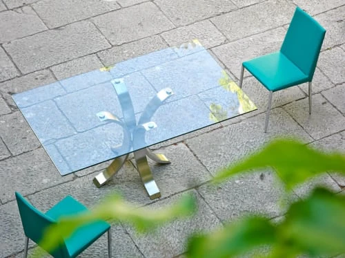 Angel Cerda Tables à Manger Table à Manger En Verre Trempé Et Pieds En Acier Inoxydable L150