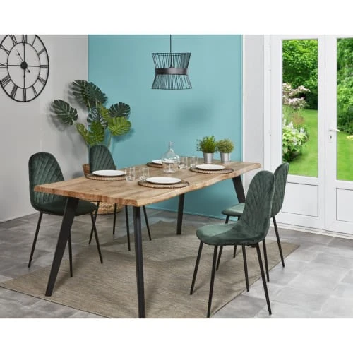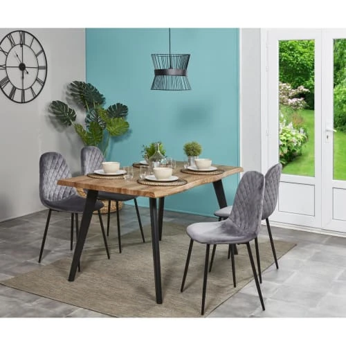Hellin Tables à Manger Table De Salle à Manger Rectangulaire En Acacia Et Métal Noir L180
