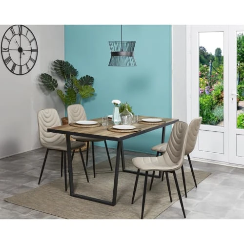 Hellin Tables à Manger Table De Salle à Manger Rectangulaire En Acacia Et Métal Noir L200