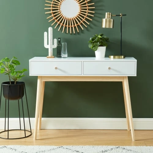 Calicosy Consoles Et Drapiers Console Industrielle 2 Tiroirs L100 Cm – Décor Bois Clair