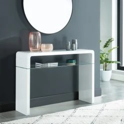 Baita Consoles Et Drapiers Console Laqué Blanc Brillant étagère En Verre