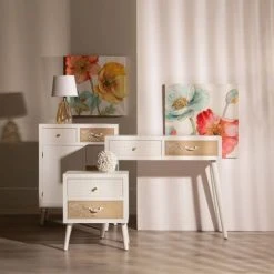 Altobuy Consoles Et Drapiers Console 2 Tiroirs Bois Massif Et Motif Floral