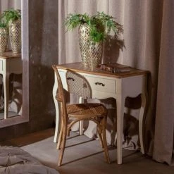 Altobuy Consoles Et Drapiers Console 2 Tiroirs Pin Massif Naturel Et Crème