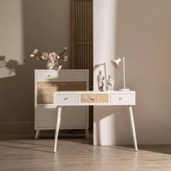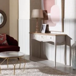 Altobuy Consoles Et Drapiers Console 3 Tiroirs Blanc Et Naturel Aspect Vieilli