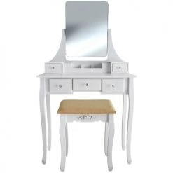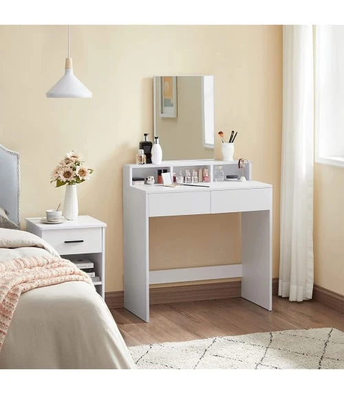 Calicosy Coiffeuses Coiffeuse Blanche Avec Miroir Ă Ampoules Et 2 Tiroirs – L80 X H145 Cm