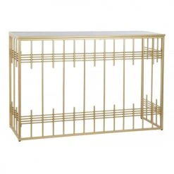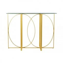 Wadiga Consoles Et Drapiers Console En Métal Doré Et Plateau En Verre Géométrie 100x35x78cm