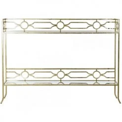 Wadiga Consoles Et Drapiers Console étagère En Métal Doré Et 2 Plateaux Miroirs 127x23x90cm