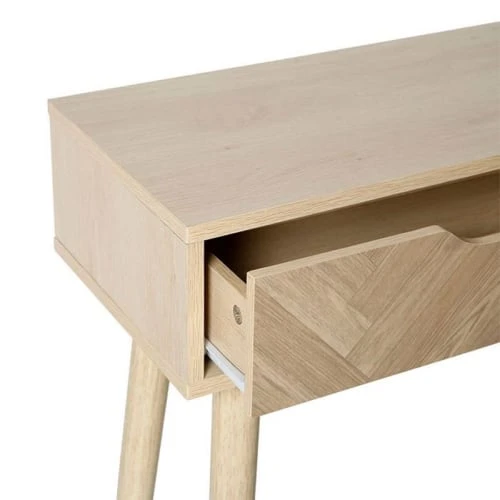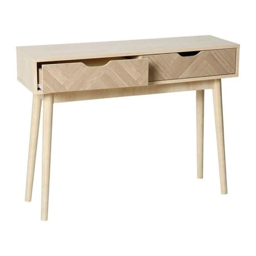 Vous aimerez le look de cette console au design aspect marqueté moderne.