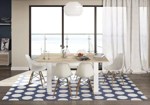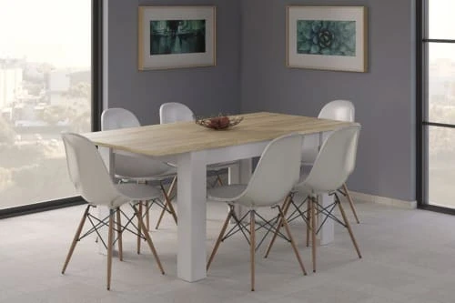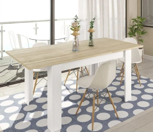 Table extensible noble en panneaux de particules et MDF, un matériau durable sans défauts naturels grâce à la grande finition dans la phase de production. Extensible jusqu’à 190 cm, grâce au mécanisme pratique, il vous permet de déplacer les deux plateaux de table vers l’extérieur pour insérer l’extension centrale de 50 cm entre eux, le rendant indispensable pour votre maison, garantissant un produit transformable selon vos propres besoins d’espace. Les lignes simples de ce produit lui permettent d’être placé dans tout type d’environnement, du plus classique au plus moderne, conçu comme des tables à manger, ils sont optimaux lorsqu’ils sont utilisés comme bureaux avec un grand plan de travail. Idéal pour ceux qui recherchent une table spacieuse mais confortable à la fois. Mesure 140 x 78 x 90 cm.