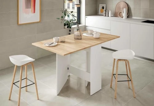 Dmora Tables à Manger Table à Manger Pliante Effet Bois Blanc