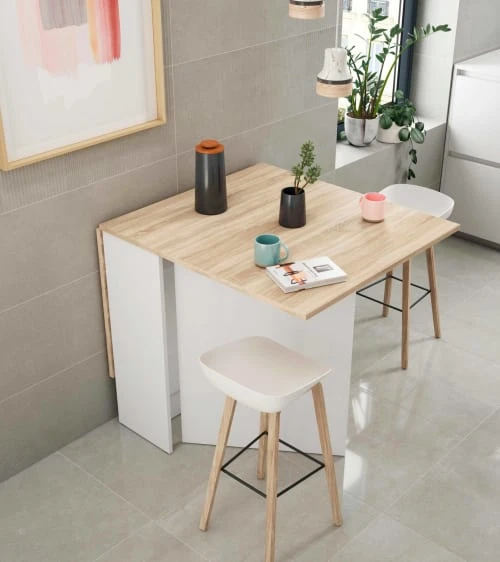 Table à manger multifonctionnelle pratique, elle peut offrir un grand plateau pour manger, étudier ou travailler. Très pratique et facile à manipuler, parfait pour les environnements ayant besoin d’espace, il peut être fermé et utilisé uniquement lorsque cela est nécessaire. Grâce à un mécanisme pratique, il se plie sur 2 côtés pour économiser de l’espace lorsqu’il n’est pas utilisé. Fabriqué entièrement en stratifié, il résiste aux chocs et aux rayures et est durable dans le temps. Dimensions en cm : 78 x 77 x 30.