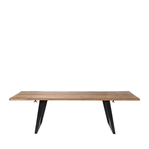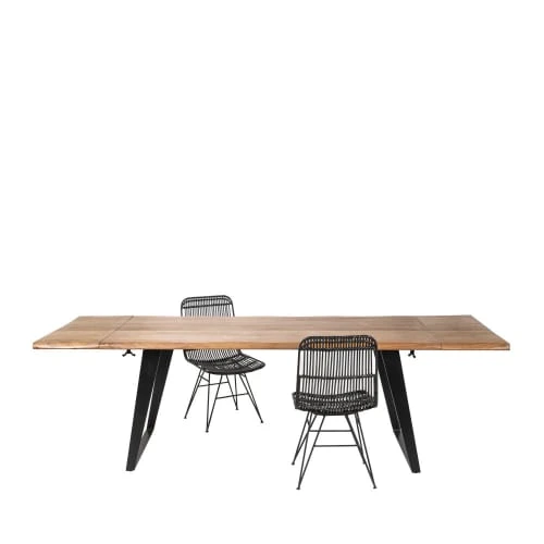 Drawer Tables à Manger Table à Manger En Métal Et Teck Recyclé 200x90cm Bois Foncé Et Noir