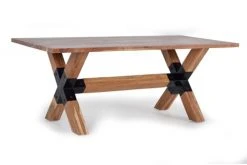 GINER Y COLOMER Tables à Manger Table à Manger En Bois D’acacia Naturel Et Pieds En Métal Noir