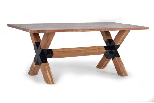 GINER Y COLOMER Tables à Manger Table En Bois Recyclé Et Piètement En Métal Multicolore