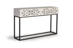 GINER Y COLOMER Consoles Et Drapiers Console En Bois De Manguier Sculptée Et Pieds En Métal