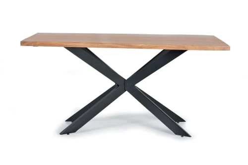 GINER Y COLOMER Tables à Manger Table à Manger En Bois D’acacia Naturel Et Pieds En Métal Noir