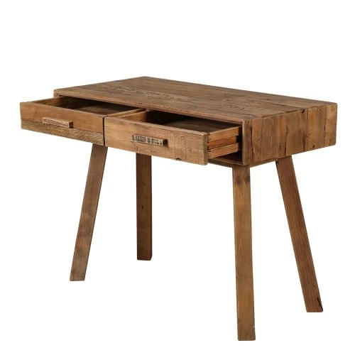 Calicosy Consoles Et Drapiers Console Industrielle 2 Tiroirs L100 Cm – Décor Bois Clair