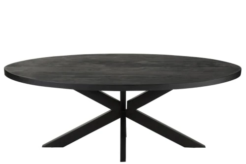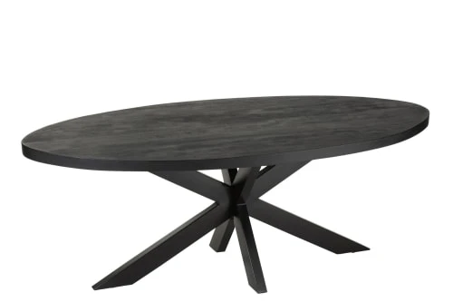Hellin Tables à Manger Table De Salle à Manger Rectangulaire En Acacia Et Métal Noir L180