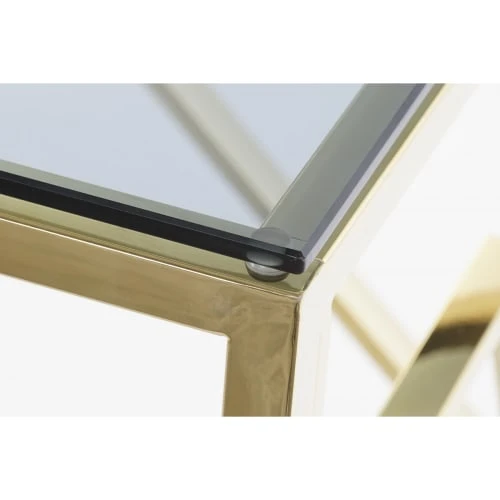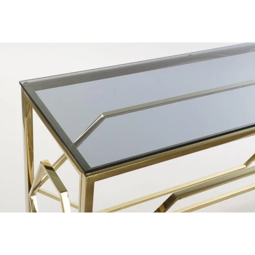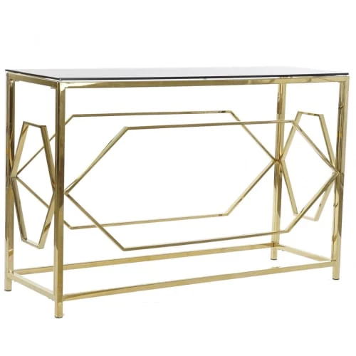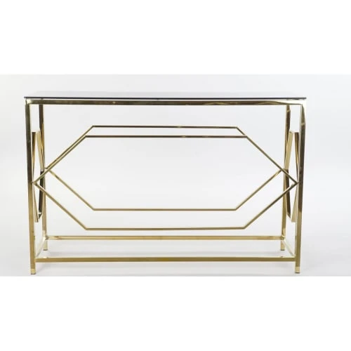 ITEM International Consoles Et Drapiers Console Métal Doré Et Plateau En Verre – 120x40x78cm