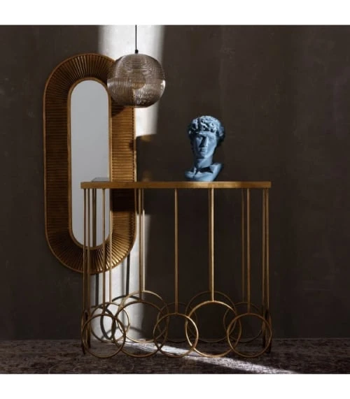 Dimensions: Longueur 80cm x largeur 35cm x Hauteur 74cm – Couleur: Doré et Noir – Matière: Métal et Marbre