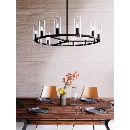 Hellin Tables à Manger Table De Salle à Manger Rectangulaire En Acacia Et Métal Noir L200