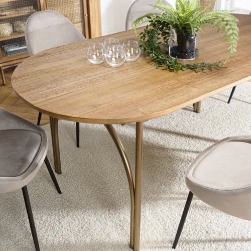 MACABANE Tables à Manger Table à Manger Plateau En Teck Recyclé Métal Pieds Métal Noir L220
