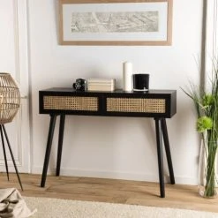 MACABANE Consoles Et Drapiers Console 2 Tiroirs Cannage Noir