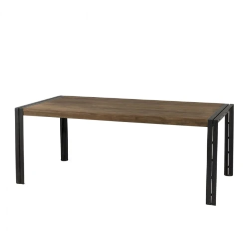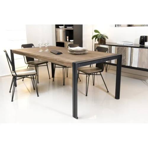 MACABANE Tables à Manger Table à Manger En Teck Recyclé Acacia Mahogany Pieds Métal Noir L200