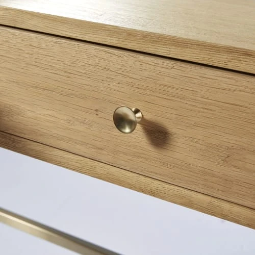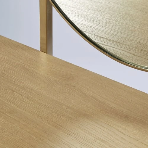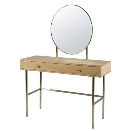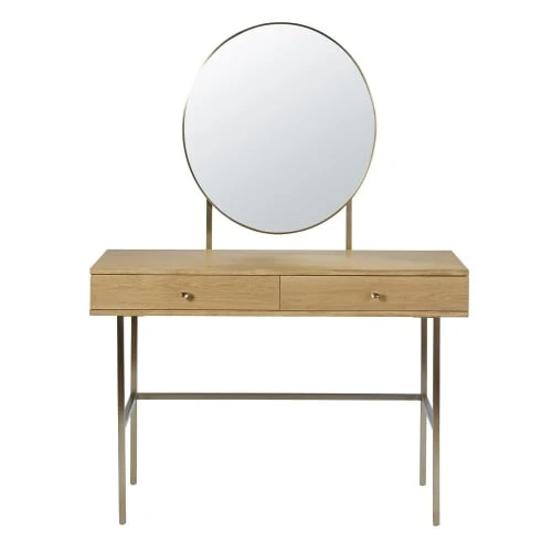 Le bois de ce meuble est certifié FSC. Ce label garantit que le bois est issu d’une forêt gérée de façon responsable : vous aussi, participez à la préservation des forêts et de la biodiversité en choisissant ce produit.Offrez-vous une chambre romantique avec la coiffeuse 2 tiroirs KARLA. Entre classique et moderne, les lignes épurées de ce meuble s’offrent une petite pointe d’originalité grâce à son piétement coloris laiton légèrement rosé. Dans ses deux tiroirs, vos produits de beauté seront bien gardés. Vous pourrez prendre le temps de vous pomponner et savourer ces moments rien qu’à vous devant cette coiffeuse. Impossible de ne pas se sentir l’âme d’une princesse, n’est-ce pas ?