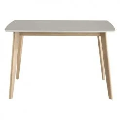 Avec son plateau en bois blanc, la table à manger L120 MIA créera une ambiance douce et lumineuse dans votre pièce de vie. De design moderne, cette table à manger 4/6 personnes conviendra pour les petits espaces. Le détail déco : ses pieds élancés en bois clair. Notre conseil : créez une ambiance graphique avec des chaises de couleur noire. Et pourquoi pas la chaise noire ICE ?