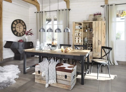 Si le mélange bois et métal est votre tendance déco du moment, n’hésitez pas une seconde devant la table à manger en manguier et métal L160 ALFRED ! Cette table robuste, avec son plateau en manguier, peut accueillir jusqu’à 8 personnes : parfait pour un moment de convivialité entre amis ou en famille. Son petit plus ? Elle dispose de 2 tiroirs, un rangement astucieux pour les serviettes de tables et dessous de verre ! Le style indus a encore de beaux jours devant lui !