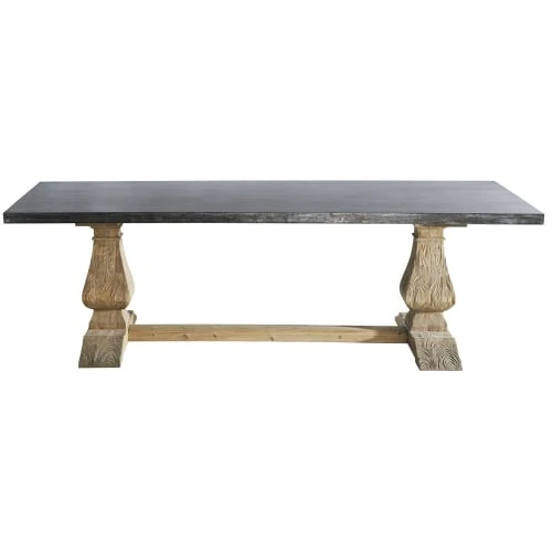 Offrez une touche de modernité et d’authenticité à votre salle à manger avec la table à manger en métal et pin recyclé LOURMARIN. Dotée d’un plateau de bois recouvert de métal galvanisé au zinc, cette table en bois de pin recyclé vous offre de belles dimensions. Travaillée avec une finition en bois vieilli, cette table 10 personnes est taillée pour les repas de famille.