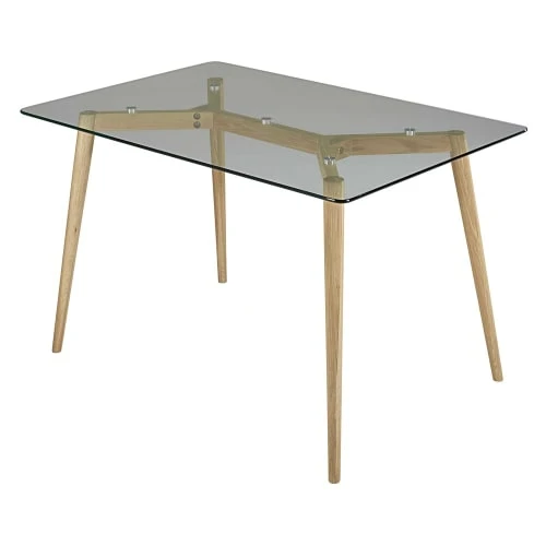 Faites profiter vos convives d’une salle à manger au style contemporain, avec la table à manger en verre et en chêne 6 personnes L120 MIRAGE. Avec son design épuré et son allure tout en finesse, cette table de salle à manger séduira les amoureux de mobilier moderne et contemporain. Grâce à sa forme carrée et son plateau en verre trempé de 120 centimètres de long, cette table en chêne 6 personnes s’adaptera facilement aux petits intérieurs. Pour une petite salle à manger design et fonctionnelle, optez pour des chaises au style contemporain.