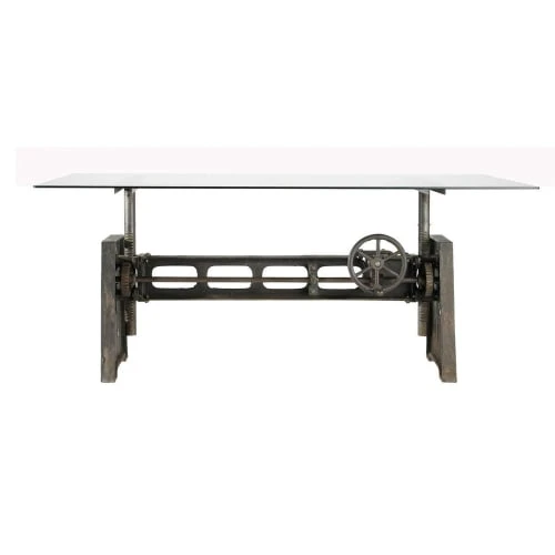 Mettez en plein la vue à vos convives avec la table à manger en verre et métal 10 personnes L200 GARIBALDI ! Surprenante avec son piètement mécanique en métal, vous vous attablerez sur un plateau en verre tout en transparence. Dotée d’une manivelle, la table à manger 10 personnes est réglable en hauteur pour plus de confort. Ce design original donnera un cachet unique à votre pièce à vivre…Comment ne pas être séduit ?