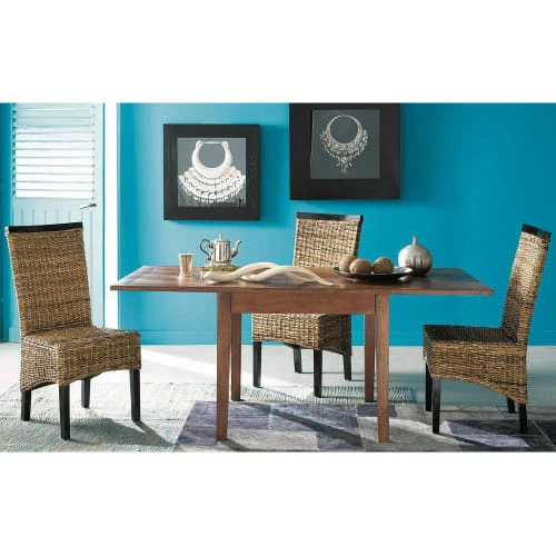 Plateau (à rabat pour rallonge) : panneau de fibres de moyenne densité et placage manguier teinté