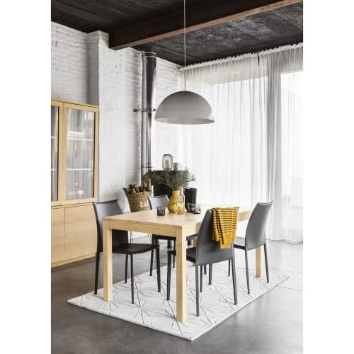Produite en bois de chêne français massif brossé et ciré, cette table à manger HAMBOURG animera le cœur de votre maison. Pratique en cas d’invités imprévus ou de famille nombreuse, cette table rectangulaire s’agrandit de 160 à 210cm de longueur grâce à une rallonge de 50cm. Polyvalente, cette table à dîner moderne vous fera passer de délicieux moments en famille ou entre amis.
