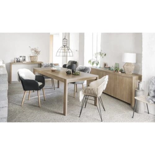 Toute en sobriété, cette table à manger extensible 6/8 personnes L160/210 BALTIC mettra une belle note de modernité dans votre séjour. Pratique avec sa rallonge de 50 cm, cette table à dîner pourra réunir jusqu’ à 8 convives. Le détail déco : sa finition légèrement blanchie. Notre conseil : mélangez les styles de chaises pour une déco originale et unique. Dans le même style, découvrez la table à dîner STOCKHOLM.