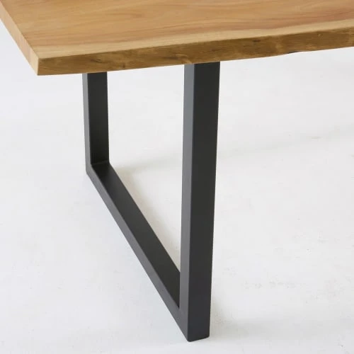 Retrouvez l’authenticité du bois à travers la table à manger indus en acacia et métal noir PALISSANDRE ! Sa particularité ? Un plateau à l’état brut qui fait la part belle aux aspérités du bois. Fixée sur deux pieds modernes en métal noir, cette table à manger 8/10 personnes conjugue les styles avec goût. Nouvelle mission : dénichez les chaises parfaites qui l’accompagneront !