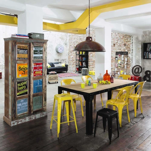 Industrial is the new black ! La preuve avec la table à manger indus en manguier et métal L200 FACTORY à l’esprit loft résolument moderne. Piétement imposant, rivets apparents, plateau en manguier massif brut… Pas de doute, cette table à manger 8/10 personnes impose son charme authentique. Indispensable pour les adeptes de grandes tablées et familles nombreuses, elle incarne le mobilier chaleureux et convivial par excellence. Accompagnez-la de nos chaises indus phare : les MULTIPL’S !