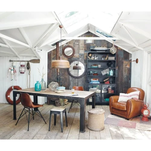 Métal riveté vieilli, fixations apparentes, bois dans son aspect le plus simple… Cette collection au charme brut de décoffrage porte bien son nom ! Les lattes de manguier massif permettent d’adoucir la dureté du métal foncé, pour un style industriel à la fois chaleureux et authentique. Envie d’un intérieur à l’esprit loft urbain ? Accompagnez la gamme FACTORY d’une déco minimaliste, relevée par des touches de béton ciré et de cuir vieilli.