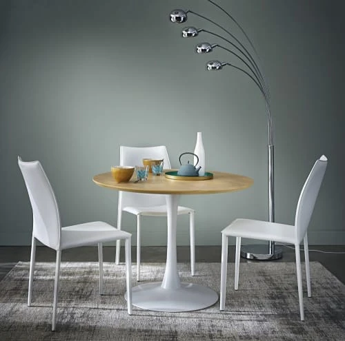 Adoptez le style épuré et moderne de cette coquette table de salle à manger en métal blanc CIRCLE. Si le coloris de son plateau réchauffera le style de votre intérieur, son pied tendance lui, apportera une touche de modernité. Idéal pour résister aux chocs, son pied est recouvert d’une peinture époxy qui lui permettra de conserver son aspect au fil des années. Entourez cette table de quelques chaises