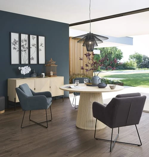 La table à manger ronde 6 personnes D130 SENDAI impose sa signature rétro enrobée d’influences contemporaines. Son plateau cylindrique en bois se pose sur un piétement rassemblant un jeu de lattes unique en bois massif sublimé d’une finition vernie. Au cœur de votre séjour, la table à dîner ovale en bois saura combler convives et hôtes, tant elle en impose !
