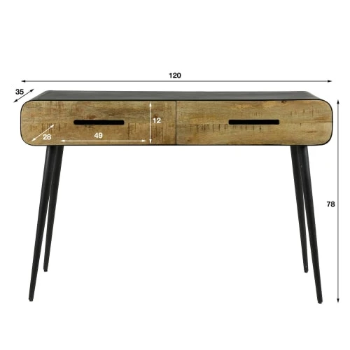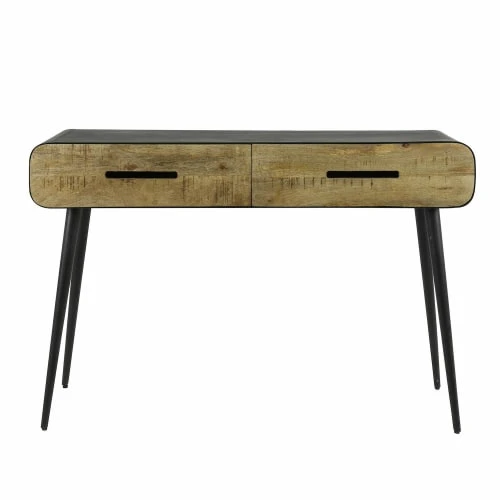 Calicosy Consoles Et Drapiers Console Industrielle 2 Tiroirs L100 Cm – Décor Bois Clair